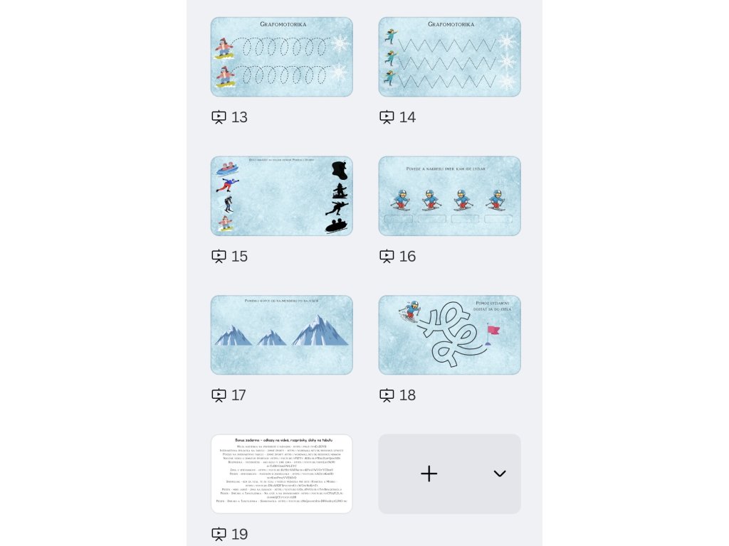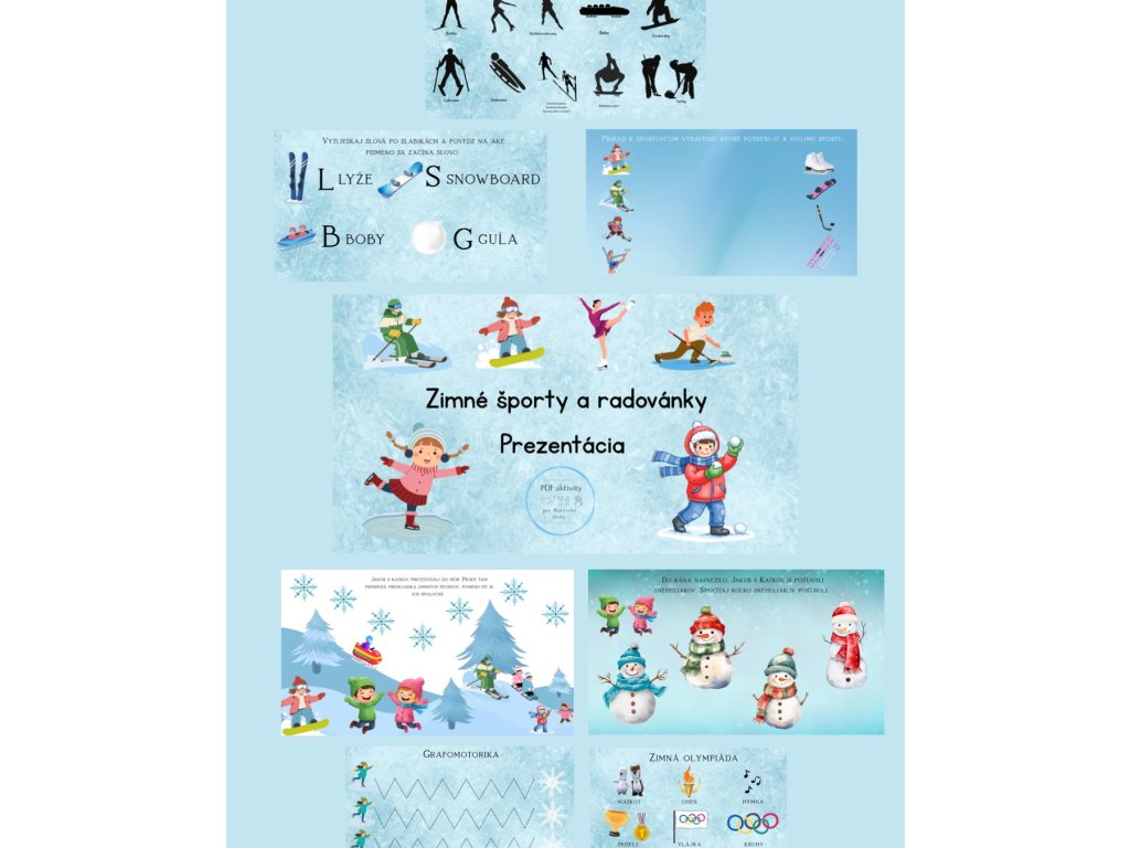 Prezentáciu tvoria náučné plagáty k rozhovorom, poznávaniu, úlohy na rozvoj zrakového vnímania, matematických zručností, rozvoj reči a logického myslenia a bonusom sú interaktívne odkazy a odkazy na videá.
